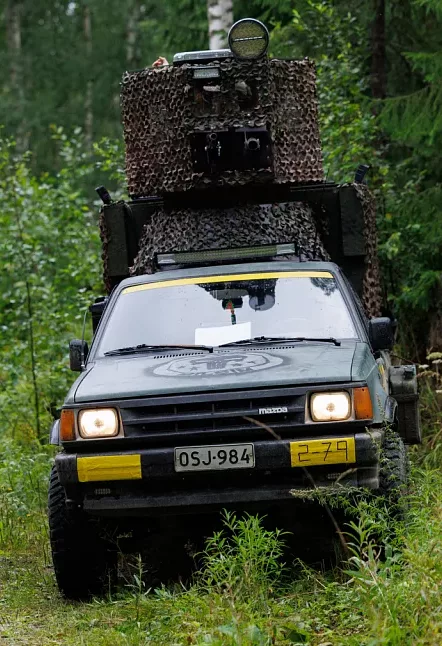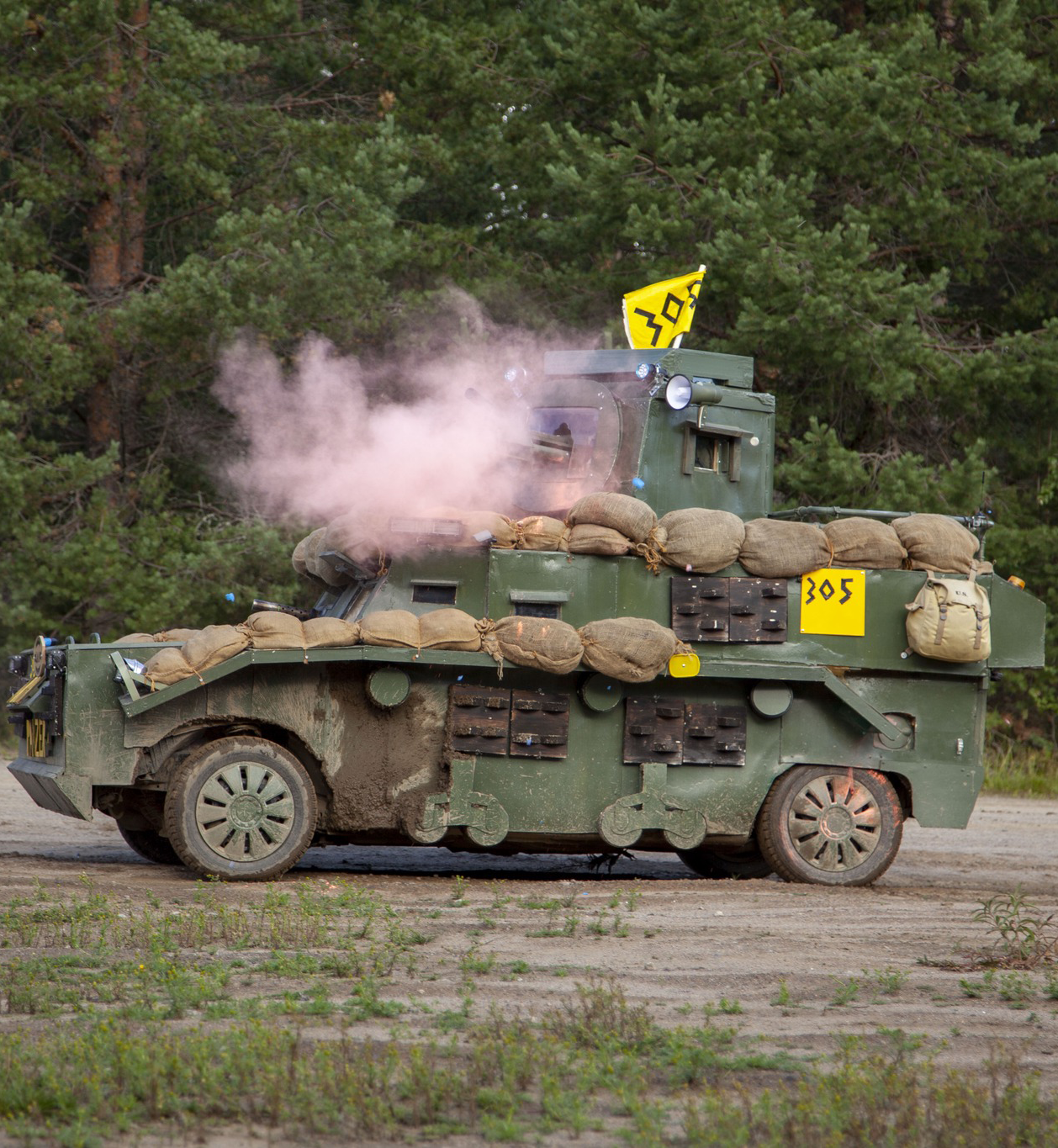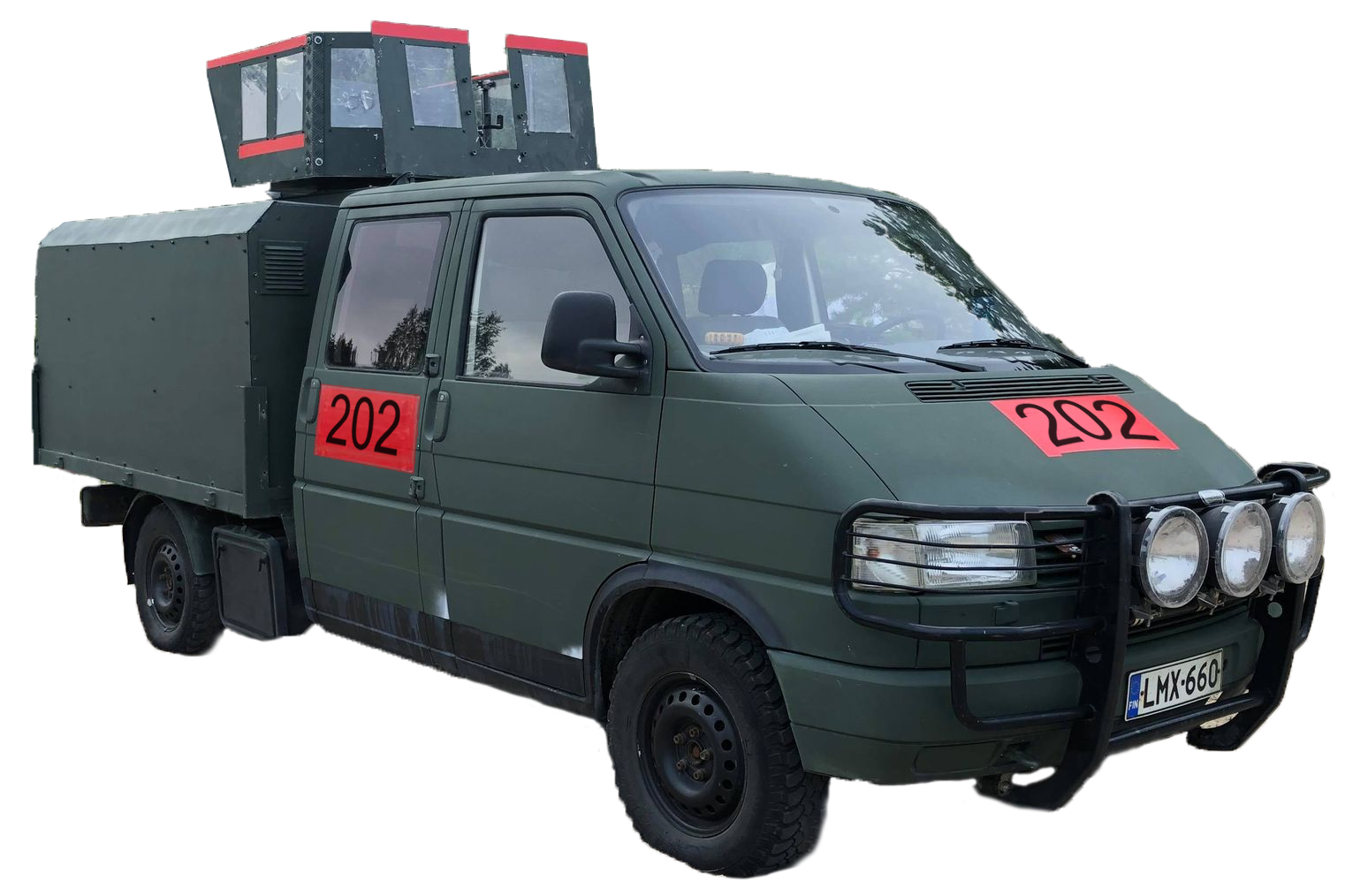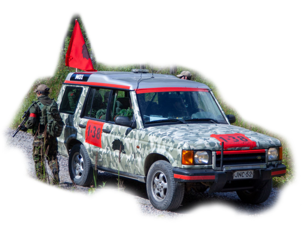 - Pelinjohdon määrittämät ajoneuvot, vaatimuksena vähintään kiinteä, 360° suojaava, ympäri pyörivä KK-torni. Ajoneuvo voi myös olla hinattava etupanssaroitu panssarintorjuntatykki.